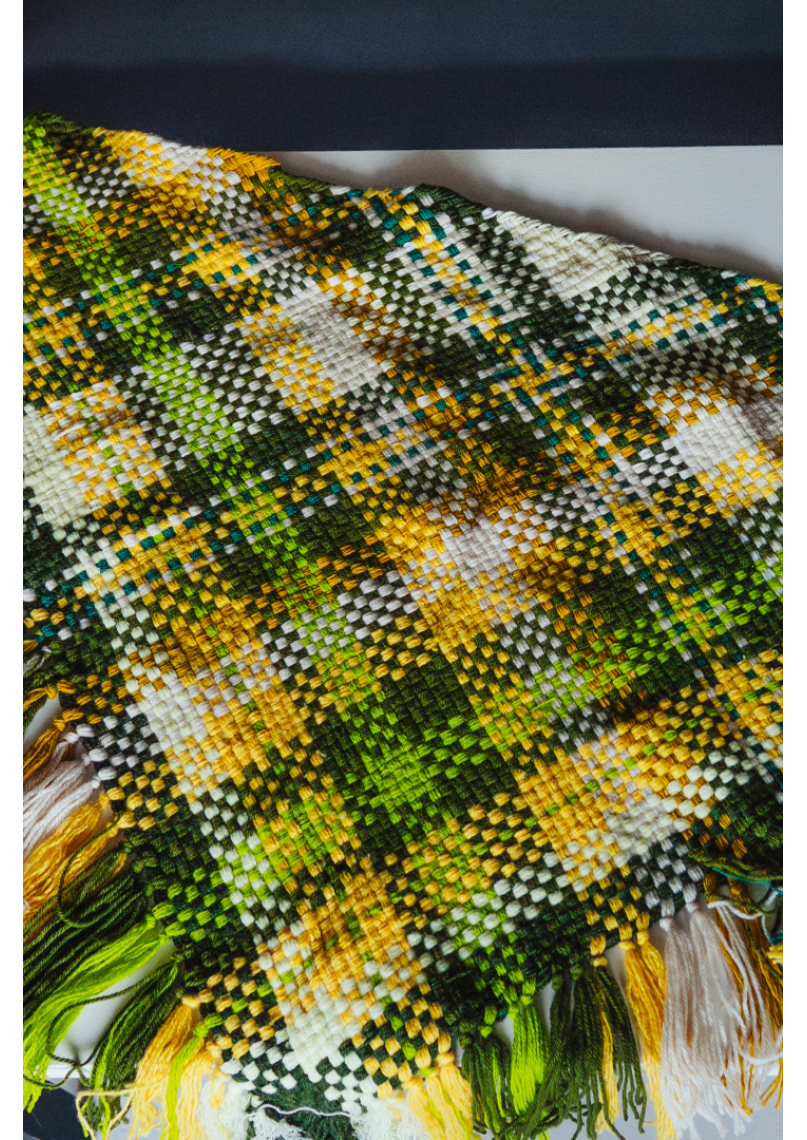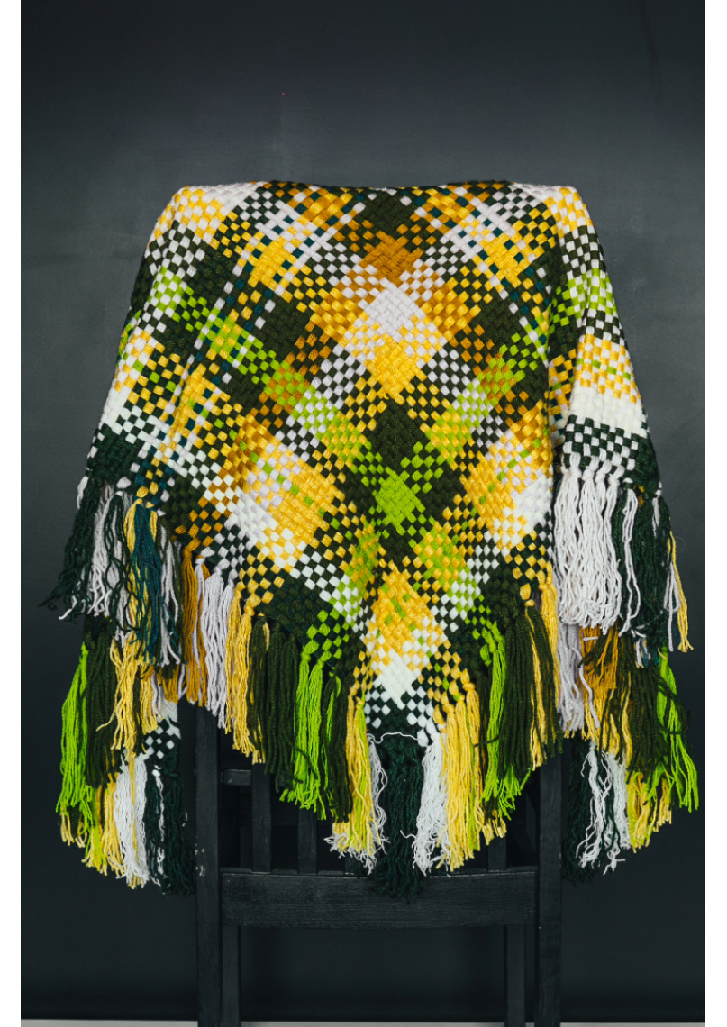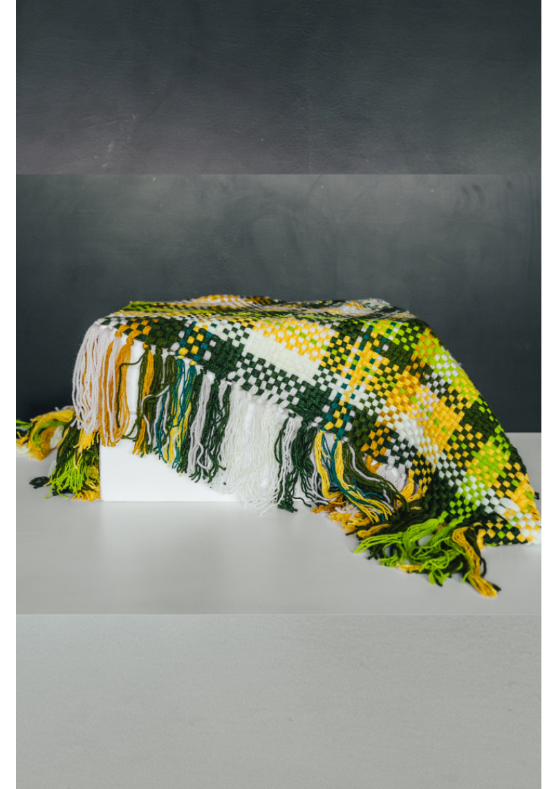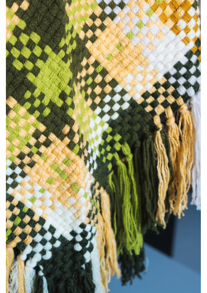 This shawl is carefully woven from semi-wool and quality blended yarn, combining traditional design with modern functionality. It is soft, warm, and breathable – perfect for use as a scarf, shoulder wrap, or decorative fabric in your home. The handmade nature makes each item uniquely expressive.