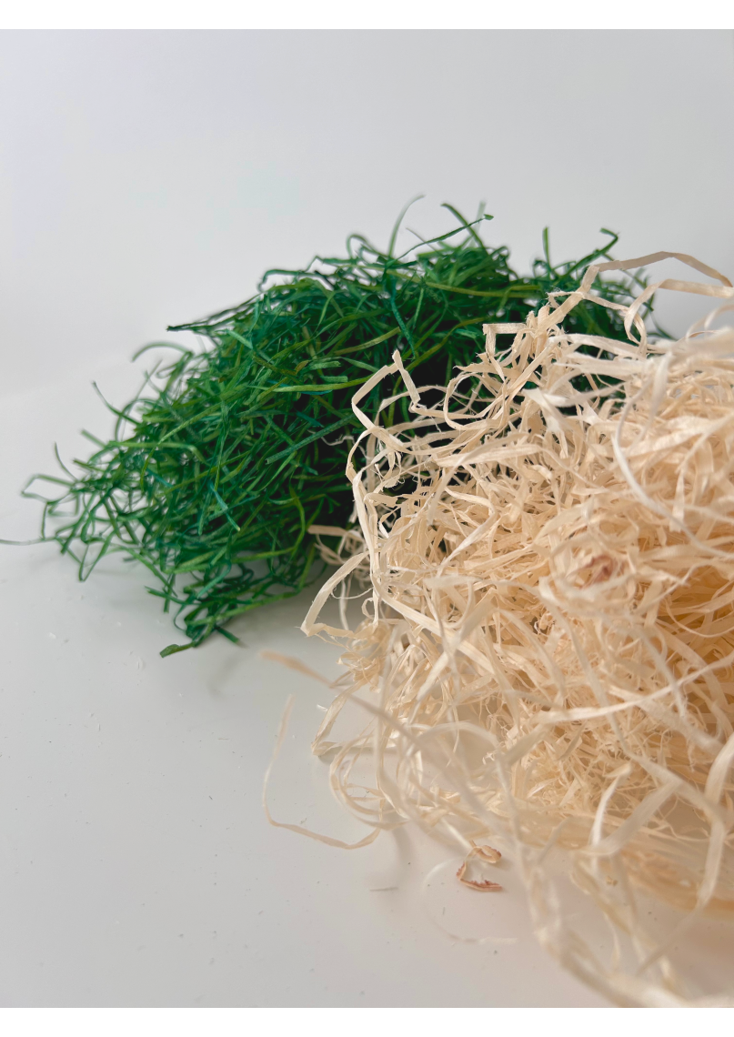 KOWOOL green wood wool is an aesthetic and natural material for packaging gifts or fragile products and for decorations. It not only protects products during transport but also adds a vibrant, natural accent. With its aesthetic appearance, it is also suitable for filling gift boxes, decorations, and other types of packaging.