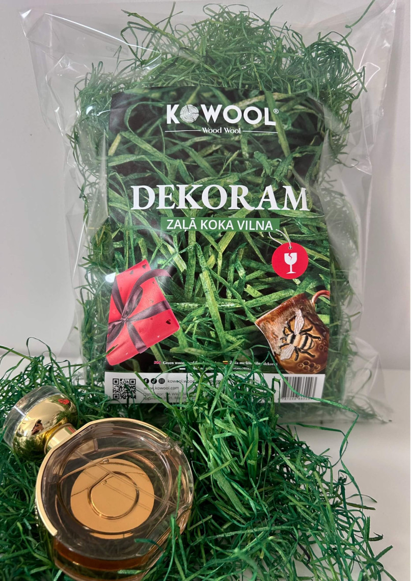 KOWOOL zaļā koka vilna ir estētisks un dabīgs materiāls dāvanu vai trauslu produktu iepakošanai un dekorācijām. Tā ne tikai aizsargā produktus transportēšanas laikā, bet arī piešķir tiem košu, dabisku akcentu.