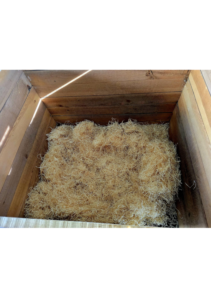 Aizpildiet pusi no guļvietas ar koka vilnas pakaišiem. Nepieciešamības gadījumā papildiniet.
