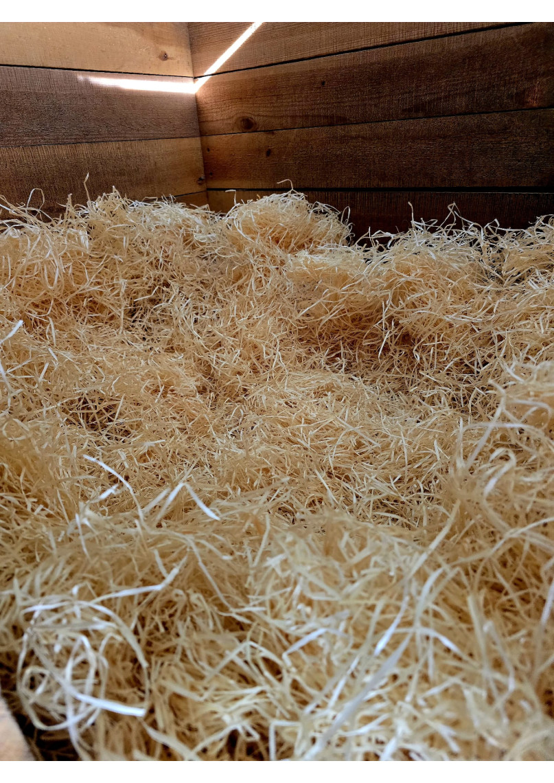 KOWOOL koka vilna ir ideāli piemērots guļvietas veidošanas materiāls suņiem būdās, zirgiem, aitām, kazām un citiem dzīvniekiem.
